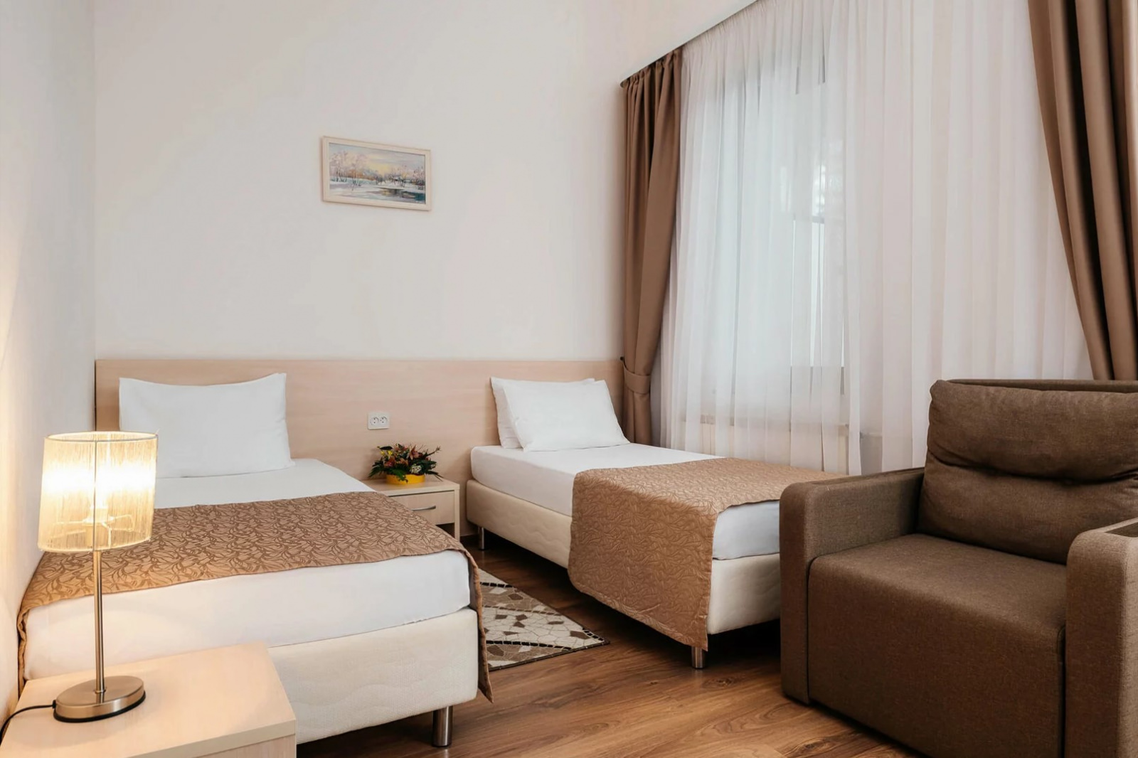Корпус 1Комфортабельные номера площадью 23 м² с великолепным видом на горы или парковые аллеи и море.
